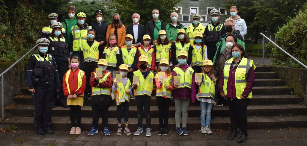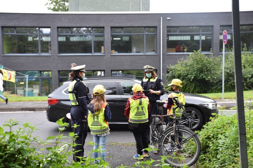 Die neuen Viertklässler nahmen den Verkehr an der Netzestraße am ersten Schultag besonders unter die Lupe.