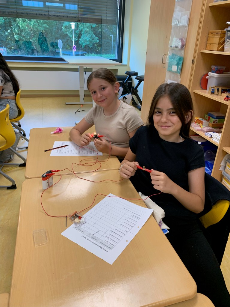 Die Lerngruppe England/ Österreich hat sich heute im Sachunterricht intensiv mit dem Thema „Strom” beschäftigt. In kleinen Forschungsgruppen führten die Kinder verschiedene Experimente durch und gingen spannenden Fragen nach, zum Beispiel: „Welche Gegenstände leiten den Strom?”