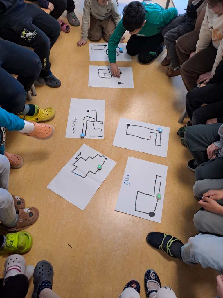 In den letzten Wochen haben die Erst- und Zweitklässler*innen der Lerngruppen Portugal und Norwegen im Sachunterricht auf spielerische Weise die Welt des Programmierens entdeckt. Mithilfe kleiner Ozobots lernten die Kinder, wie man Technik gezielt steuert: Schwarze Linien und bunte Farbcodes auf dem Papier dienten dabei als Befehle, um den Robotern Geschwindigkeit und Richtung vorzugeben.