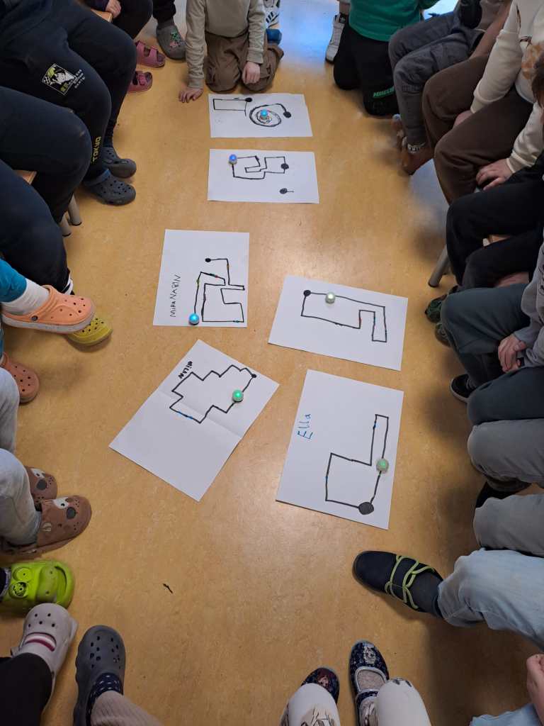 Mit viel Fantasie entstanden kreative Parcours, die die Ozobots abfuhren. Zum Abschluss der Einheit präsentierten die Kinder voller Stolz ihre selbst programmierten Wege.