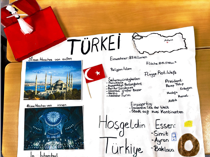 Als erstes haben wir über unsere Muttersprachen gesprochen und dann in Gruppen zusammengefunden. Gemeinsam haben wir überlegt, was wir über unsere Muttersprachen wissen, was wir noch erfahren wollen und was wir von zu Hause mitnehmen können, um unsere Muttersprachen zu präsentieren. Dann haben wir im Internet recherchiert. Die gesammelten Informationen haben wir dann entweder auf ein Plakat übertragen oder ein Schuhkarton gestaltet. Auch haben die meisten Gruppen Stabfiguren mit traditioneller Kleidung gestaltet. Das hat richtig Spaß gemacht.