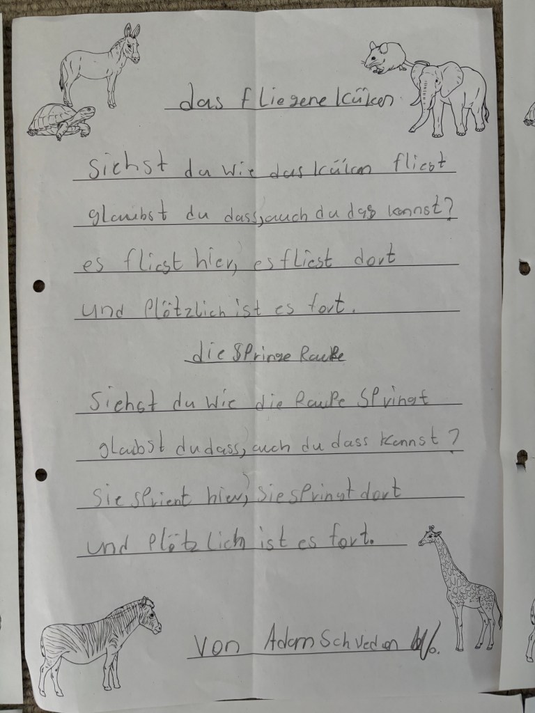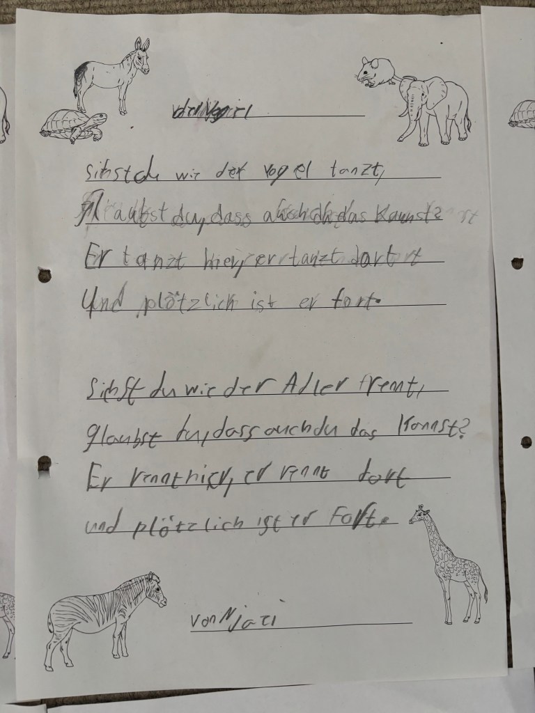 Im Deutschunterricht sind wir in den letzten Wochen zu echten Dichterinnen und Dichtern geworden und haben kreativ mit Sprache experimentiert.