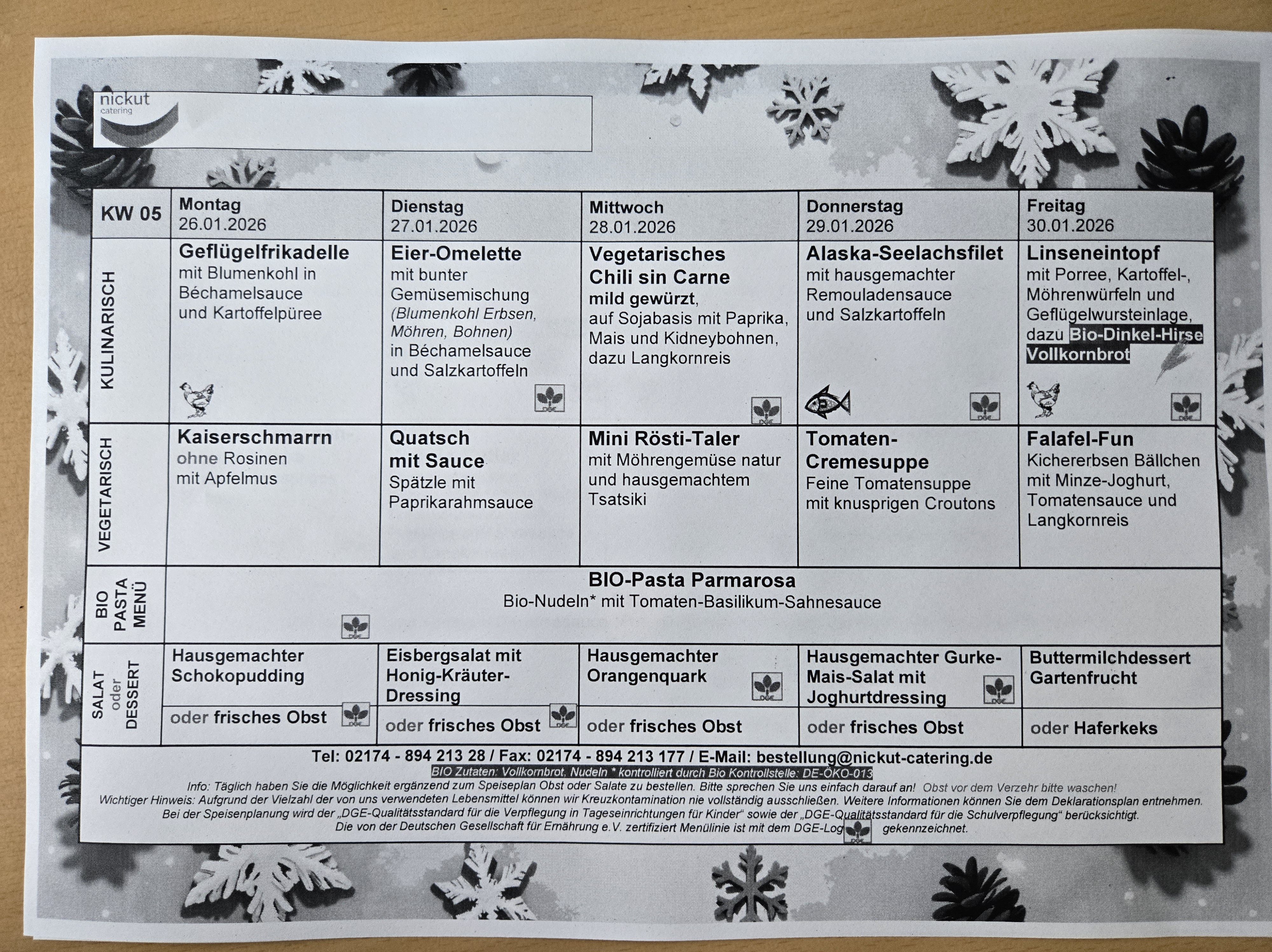 Speiseplan vom 26.01.2026 – 30.01.2026